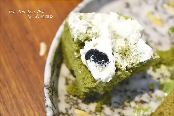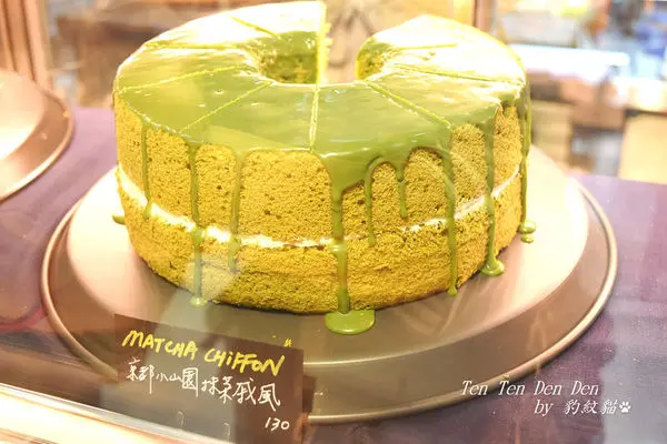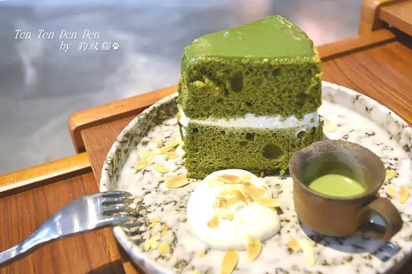 第一眼在冰櫃裡看見它,阿貓我就舉白旗投降。抹茶戚風色澤不但亮眼,擺盤有講究,吃法也很多變。單純的戚風蛋糕嘗起來濕潤又綿密,清新的抹茶芬芳迴盪不散,連怕抹茶味的貓妹都說好吃。