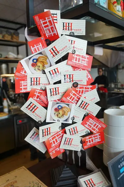 像是聖誕樹的名片夾xD!!幸福這裡目前有泰山和新莊分店唷~歡迎參考→【新北新莊早午餐】幸福這裡 Happiness Here||*♥平價連鎖歐式早午餐"四片土司總匯 店內裝飾