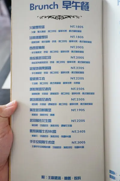 【結論】:有自己特色的早午餐下午茶餐點cp值很不錯 環境方面有一點點油煙味座位滿多的寬敞舒適 服務方面免服務費態度親切很棒而且俄羅斯店員長的好漂釀>< 餐點方面飲料和餐點都表現不錯擺盤和細節都很注重價格親民卻有水準的餐點部分餐點是板橋限定的!!!下雨天限定的吐司很有特色早午餐很多人推薦12/1又有餐酒館實在令人期待呢><!!! 推薦給大大參考謝謝大大的閱讀~~~============================