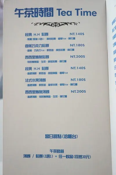 法式薄餅有鹹有甜都在兩百元內午茶套餐選鬆餅+點飲料可折抵30元
