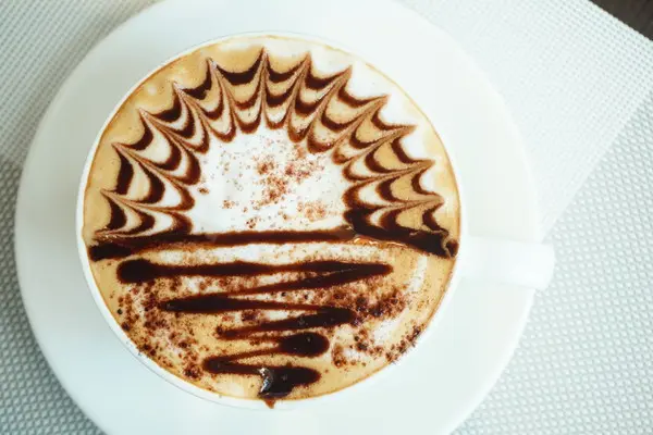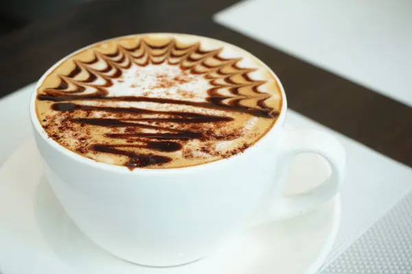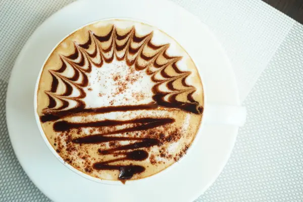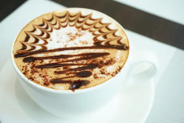 是美美的畫花咖啡呀!!!!!奶泡打得很不錯很綿密使用巧克力醬做畫花 使用核桃布朗尼糖漿喝起來比較偏甜~~不過咖啡味道滿香純的~