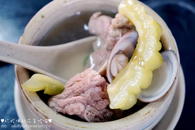 苦瓜排骨湯,除了苦瓜還排骨之外還有一些蛤蜊