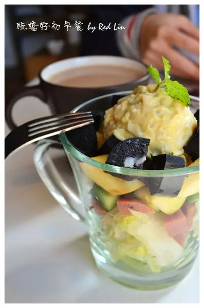 德式香腸杯杯 (沙拉) (65元)、後者好初奶茶 (20元)。