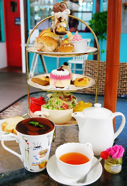 聽佳君說2人份的英式下午茶是看起來超豪華的三層架擺盤,而且還可任選180元飲料呢!
