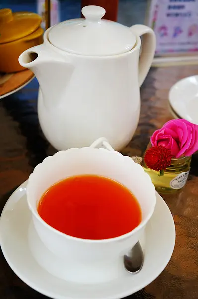佳君點的水果茶,茶壺打開來真的有很多的水果片,真材實料