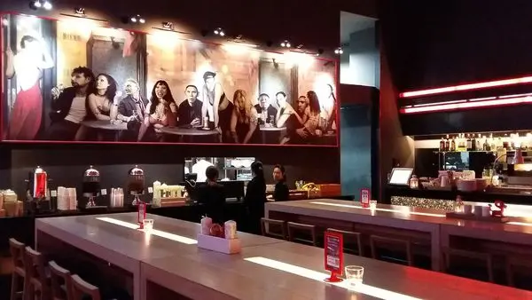 餐廳內部裝潢帶點現代設計感,挑高六米的空間整個很有lounge bar的氛圍,以黑、紅色為基底。