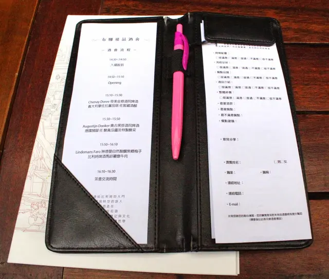 黑色帳夾裡面是今天的品酒會流程跟品飲紀錄