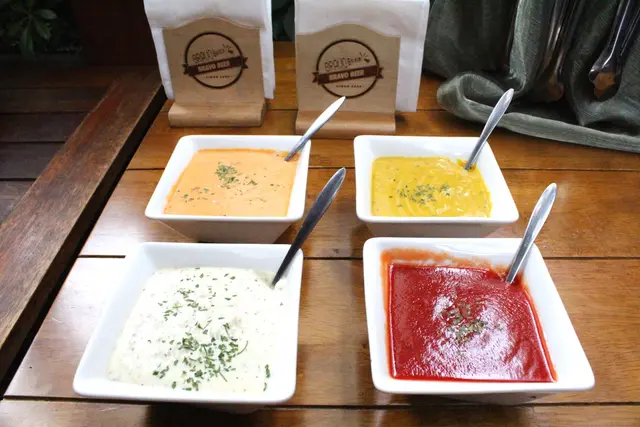 醬料首先登場!除了右下的番茄醬,其他我都很愛~(尤其是左上橘色醬料)