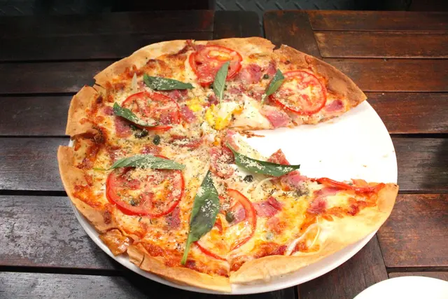 pizza餅皮很酥脆、用料很實在,不但便宜又好吃!