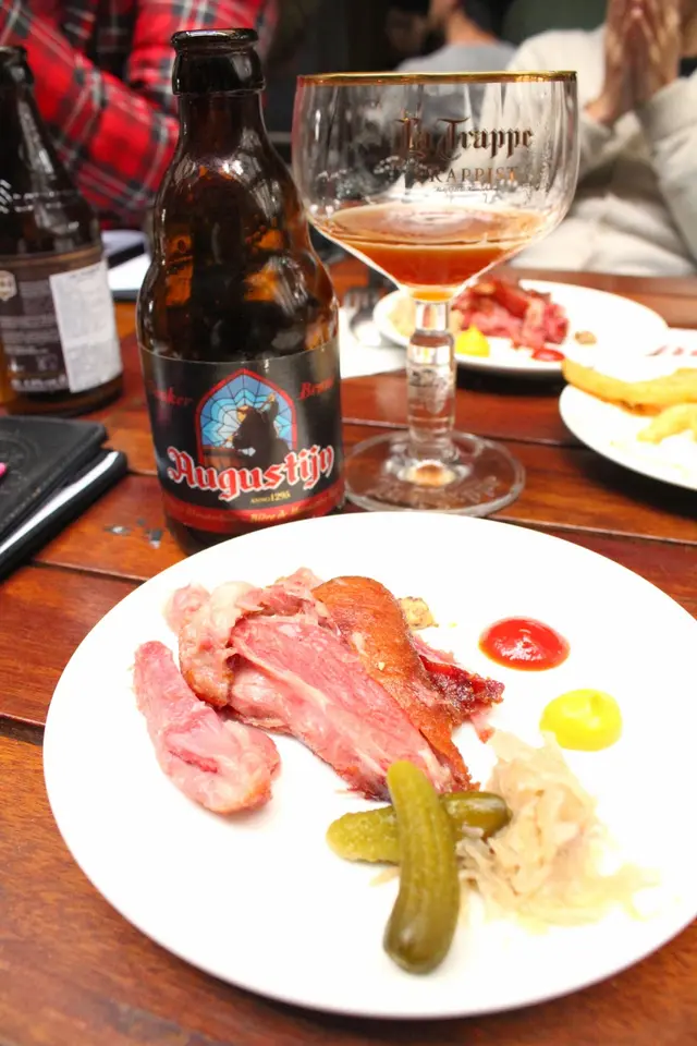 帶有一點嚼勁的口感形成畫龍點睛的效果 老闆親自示範倒啤酒的方法,像這一款lager就應該把杯子傾斜45度倒入
