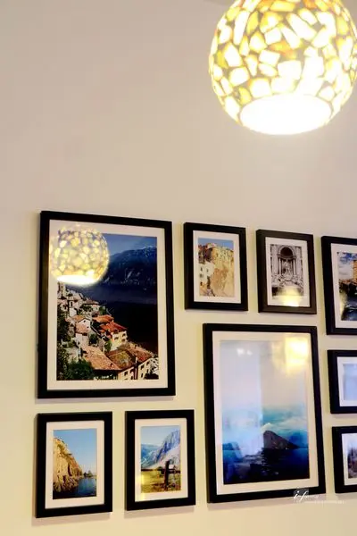 但其實要以不同尺寸的相框及照片顏色,要排出視覺平衡的效果並不容易。