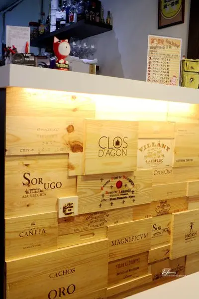 這個由酒箱堆砌而成的櫃面是真實可用的,據說是老闆特地搜集而來。
