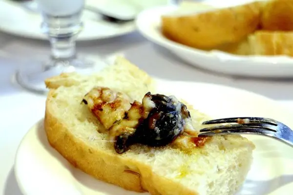 把焗烤田螺放在佛卡夏上一起吃,口味更升級!