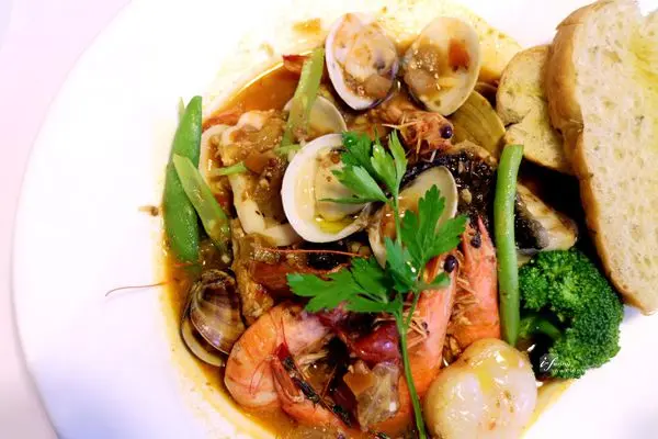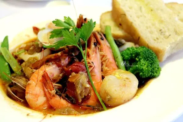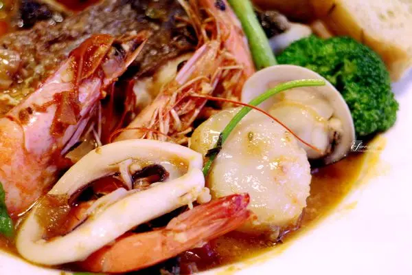 採南義烹煮手法,使用了大量的香料,再加上新鮮番茄及蔬菜熬煮的湯頭,滿滿的海味。