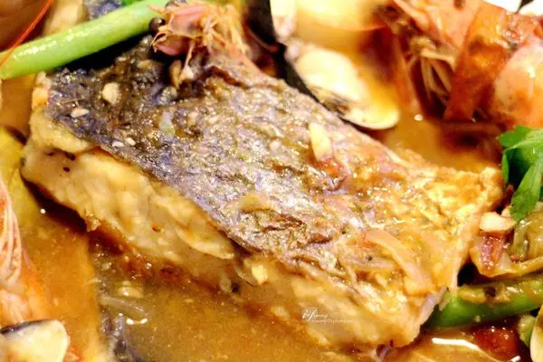 肉質細嫩的魚肉,一點腥味也沒有,搭著略帶酸甜的醬汁,大口吃魚肉好爽快!