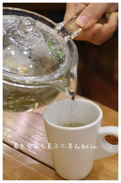 此時芝芝小姐鬧了個笑話。她馬上到了一杯來喝,結果就說沒味道...不過再喝第二杯之後就有味道了。(泡茶沒人這麼快倒來喝的好嗎...哈!)這玫瑰香頌茶包裡頭含有玫瑰花、馬鞭草、檸檬草、迷迭香等。聞起來花香十足,喝起來很舒服,真是很棒的午後時光~