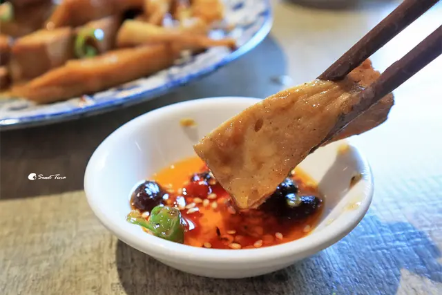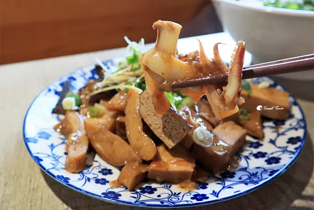 滷味拼盤 - 這天搭配的有甜不辣、百葉豆腐、大溪黑豆干、深海魷魚,獨門醬料完全不死鹹,很能帶出食材的美味。