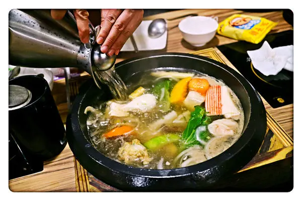 蔬菜、菇類、豆腐、芋頭、紅/白蘿蔔及少量火鍋配料