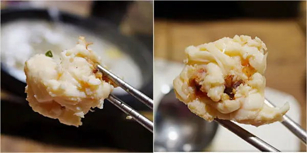 滾沸的湯底裡輕涮3至5秒入口最美味