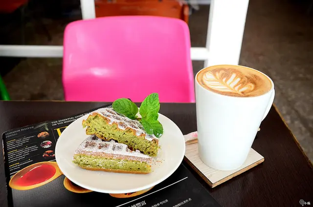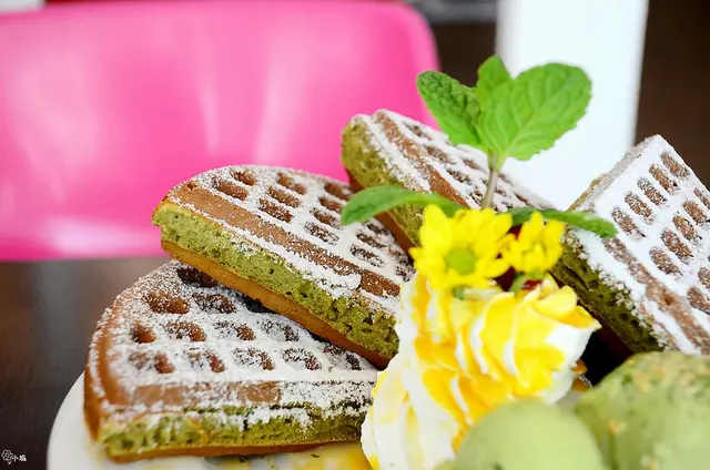 抹茶格子鬆餅,糖粉灑得好均勻,