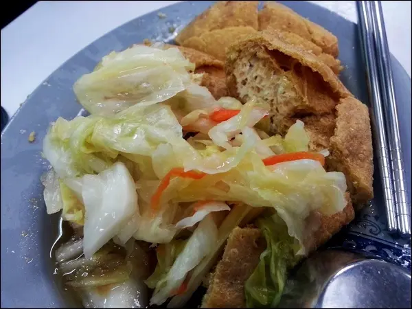 泡菜的口感不酸,搭配臭豆腐剛好可以解一些膩