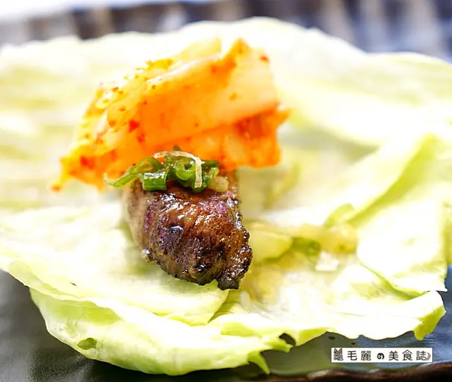 ▲七分熟,最能享受到伊比利豬鮮甜口感,可以包著生菜吃,加上泡菜或蔥鹽,