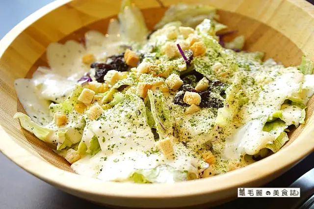 美生菜、玉米粒、起司粉、海苔粉,用來解油膩用。