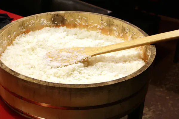 這天正巧見到這個拌好的醋飯正在放涼,飄散出的醋香味好引人食慾啊!
