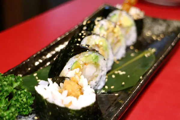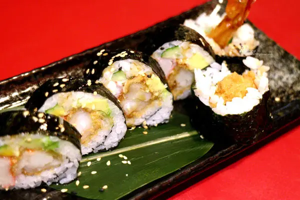 其中包覆了酪梨、小黃瓜、蟹味棒及美乃滋調味,整體味道十分豐富且協調。