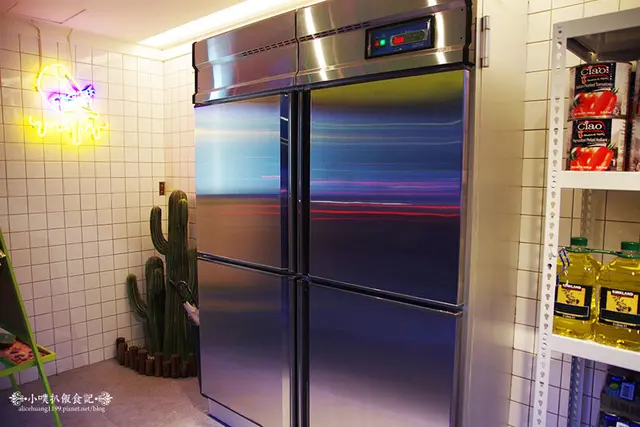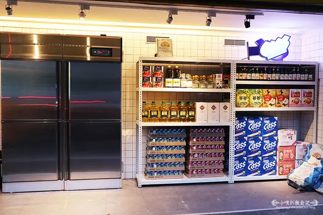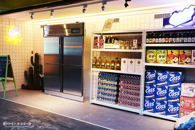 除了有很吸睛的冰箱門外,旁邊還搭置了一排鐵架,擺放眾多商品及調味品,宛如一個小型超級市場,當然也成為超級可愛的拍照背景!!!
