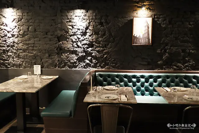 tiffany藍的沙發座椅,感覺相當舒適,大理石的桌面,跟水泥的牆面,感覺粗放狂野中,又帶有貴族的高雅氣質