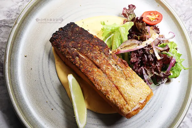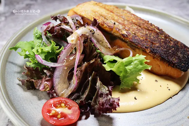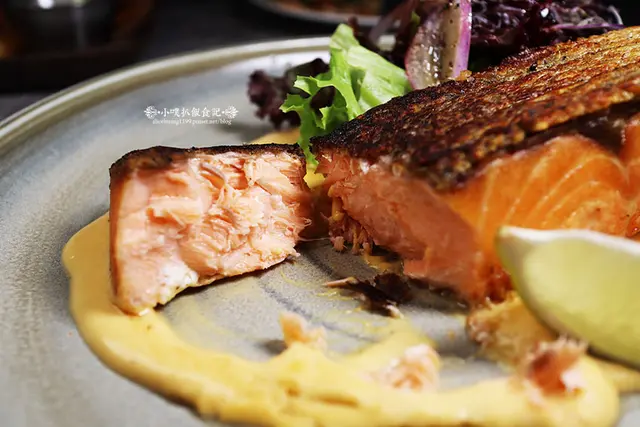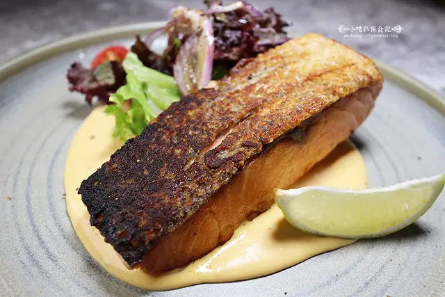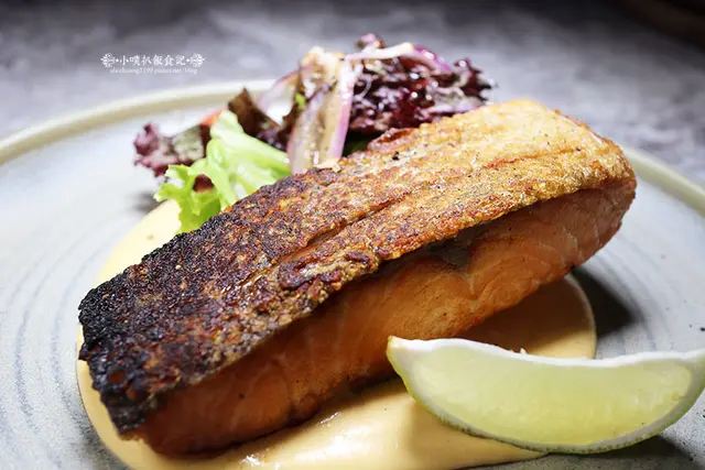 這擺盤也相當美,碳烤外皮金黃的鮭魚菲力,著實誘人啊!!!