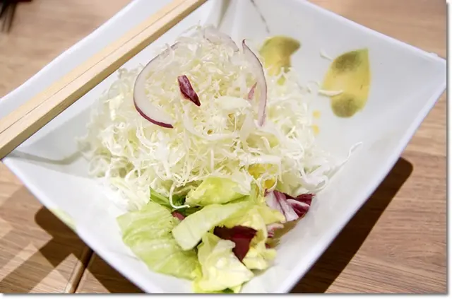 無限續加的高麗菜絲在淋上最愛的芝麻沙拉醬之後,芝麻的香、佐醬的甜以及蔬菜的脆~超涮嘴!