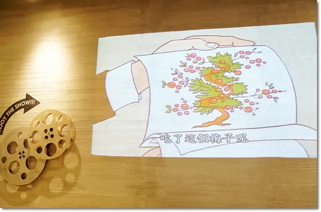 且巧妙的是金屬質感的膠捲旁,牆上超趣咪投影著卡通影片!這應該可以控制小孩一下下吧~