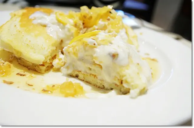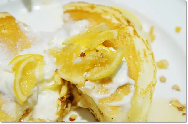 有著奶香味且略帶溼潤水感的鬆餅,夾入了清爽鹹甜的瑞可塔起司,再配上清爽微酸甜的檸檬醬之後