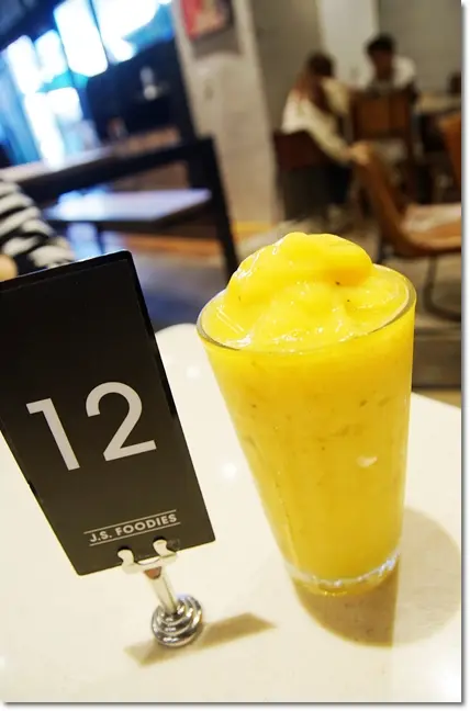 而以芒果及柳橙為主要水果去打的"思慕昔",有芒果香、柳橙酸,口感比一般冰沙還要綿密,還不錯喝