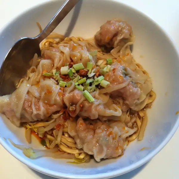 基本上這道料理是,扁食+辣油+花椒+麵。