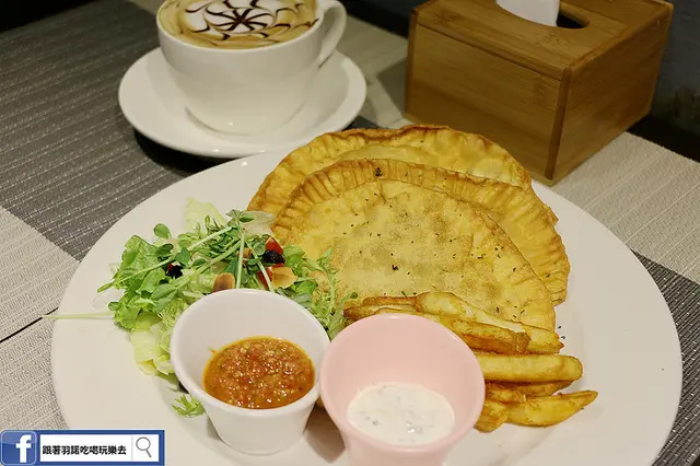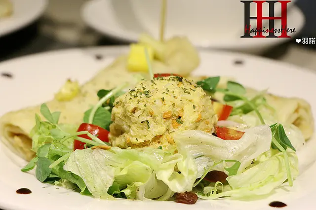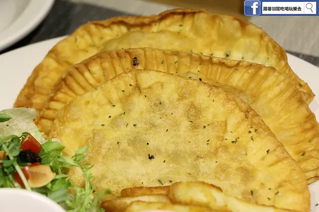 一開始以為在薄餅上的是馬鈴薯之類的入口才知道是鮪魚醬呢 鹹香滋味搭配一旁生菜挺搭配的