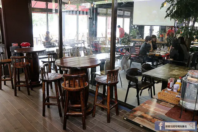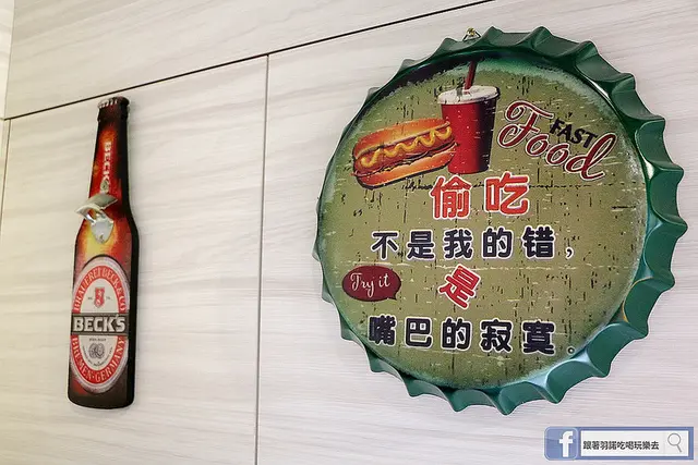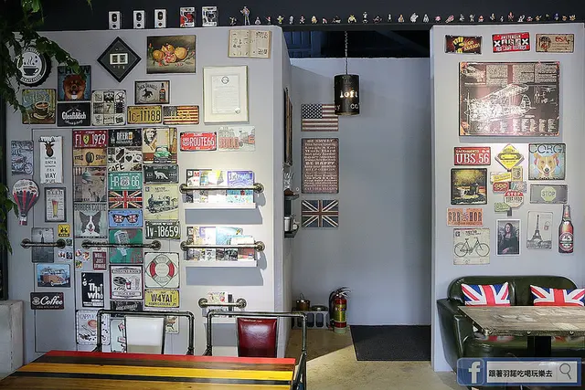 掛著各式車牌的牆壁更凸顯濃厚的美式風格