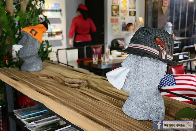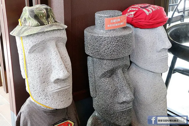 門口前佇立的這兩尊摩艾石像看起來超逗趣
