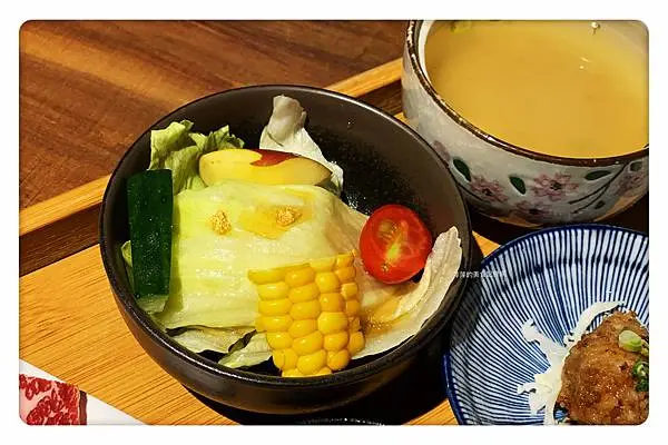 套餐包含:白飯、沙拉、味噌湯、牛肉丸