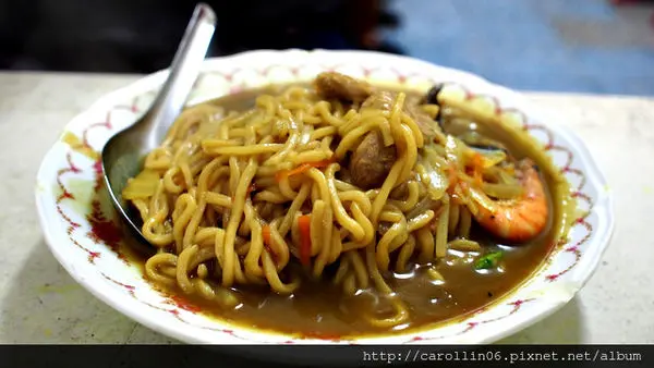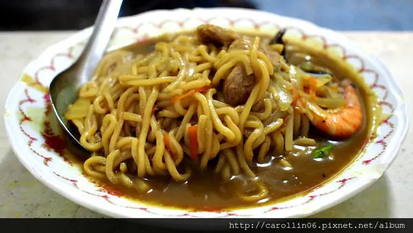 這次來基隆,主因是因為要來吃《1010湘基隆店》,附加原因就是好久沒吃義二路巷子內的《豬腳林原汁》了,這陣子正想來買一趟,就跑來啦! 豬腳斜對面有間咖哩炒麵,每次都覺得好奇怪,好像基隆特別多台式咖哩產品,尤其是炒麵。跟男友提到說,爸爸常常走這巷子往立體停車場牽車的路上,會在這間正老牌咖哩炒麵吃麵,爸爸總跟我說可惜我不喜歡吃咖哩,不然這間他相當推薦,說不輸基隆最有名的阿華炒麵,而且還不用等位子呢!