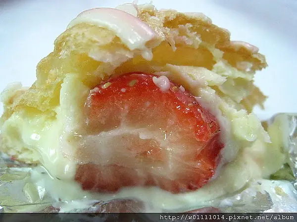 裡面可是有滿滿的克林姆餡以及一顆草莓,因為剛好這時候是草莓季阿。