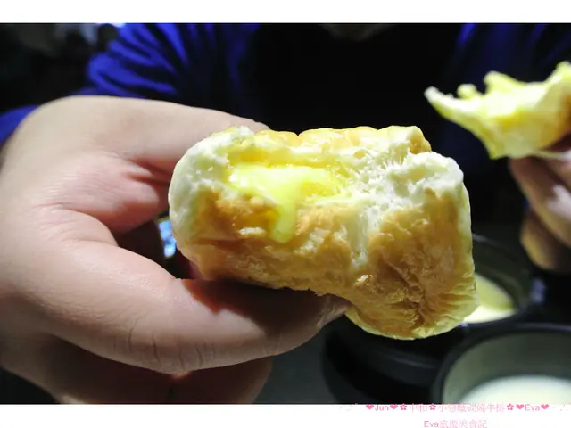 大家看,這個黃澄澄的奶油要流下來了,讓人口水也跟著流了((喂,接一下自己的口水,不要把別人位子用髒了~