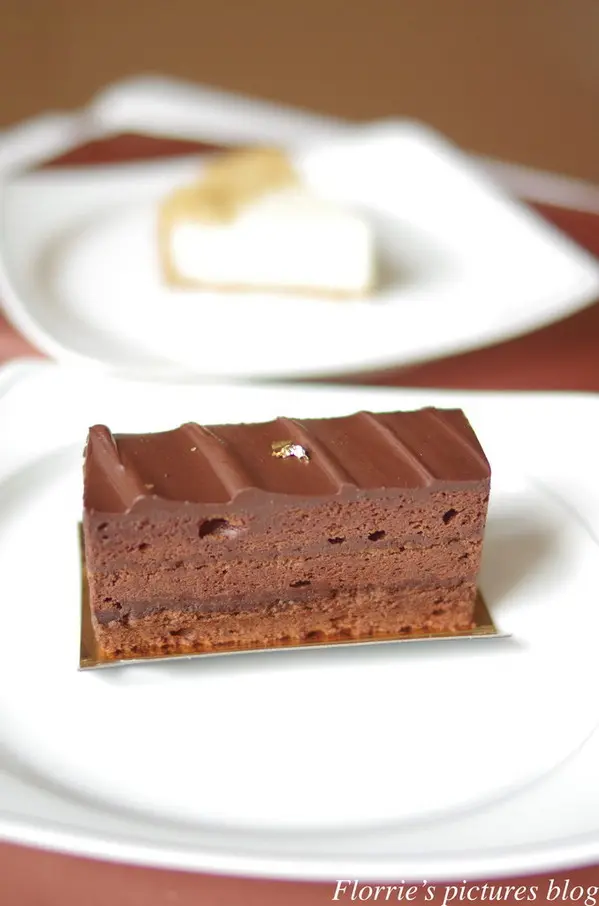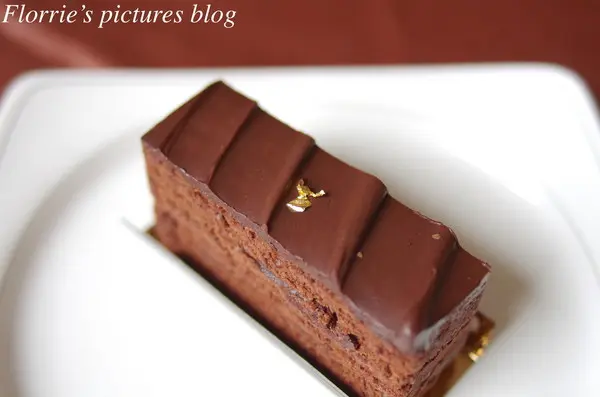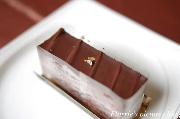 黑金磚巧克力蛋糕:該店的招牌商品讓人未吃就頗為期待入口後的口感,沒有繁多的裝飾,但表面的少許金箔更是讓整體有種低調奢華的感覺,將其切成小塊送入口中,隨著口腔的溫潤,濃郁化不開的可可香味宛如花朵在口中綻放香氣,蛋糕體吃起來綿密且帶點彈性也不會讓人甜膩感,香濃的可可香氣讓人不禁醉心其中,尾韻的些微苦甜可可滋味更是令人情不自禁回味口中的香味。