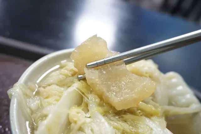 魯白菜裡面的碰皮被白菜湯煮到又軟又Q 吸滿湯汁 味道又夠 好吃