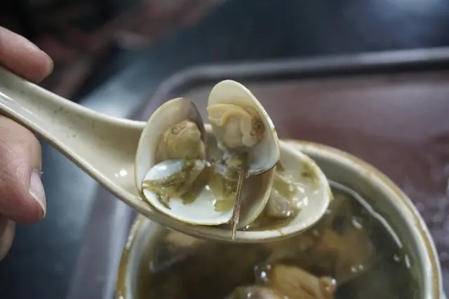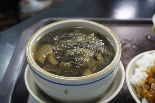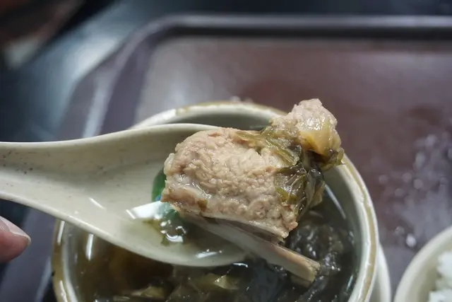 扒菜排骨湯(40)這個湯滿滿的料 除了排骨還有蛤蜊 一碗40元真的很便宜啊 湯本身的味道就還好