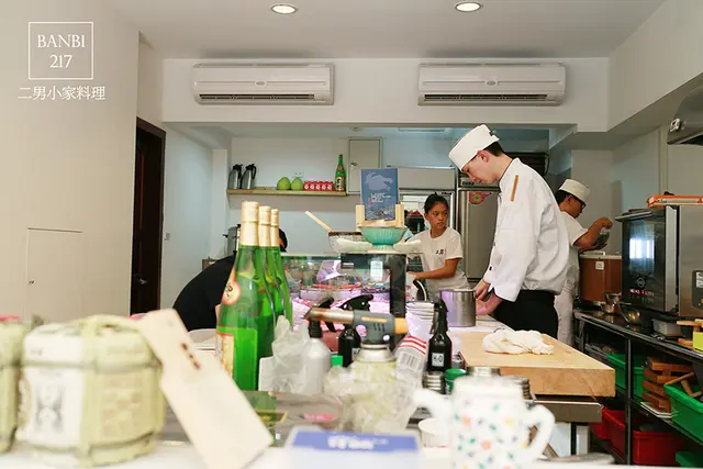 二男小家料理用餐區有一樓及二樓,一樓較為明亮且可看到師傅製作過程,二樓較為昏黃。製作餐點為兩位師傅,因此尖峰時間要稍等待,但我覺得等待是值得的,畢竟這是現點現做的新鮮生魚片與壽司丼飯、握壽司!