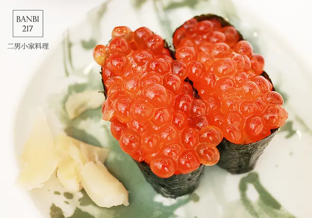 鮭魚卵軍艦握壽司$120元因為我女兒很愛吃鮭魚卵才點的,一顆顆飽滿圓潤且鮮甜無腥味的鮭魚卵很吸引人!