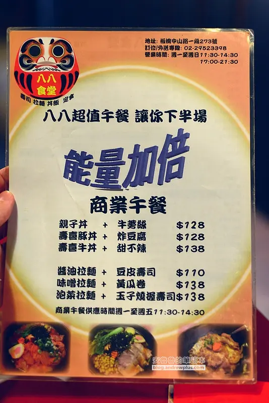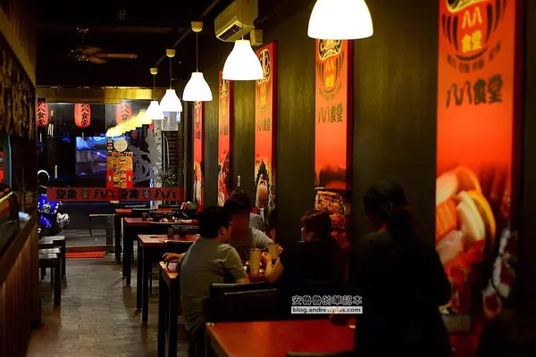 ▼八八食堂位在板橋繁忙的中山路上,距離板橋站步行大約11分鐘可以抵達,附近可以停機車,也有汽車停車場可停車,遠遠的就可以看到不倒翁,相當的好辨認!
